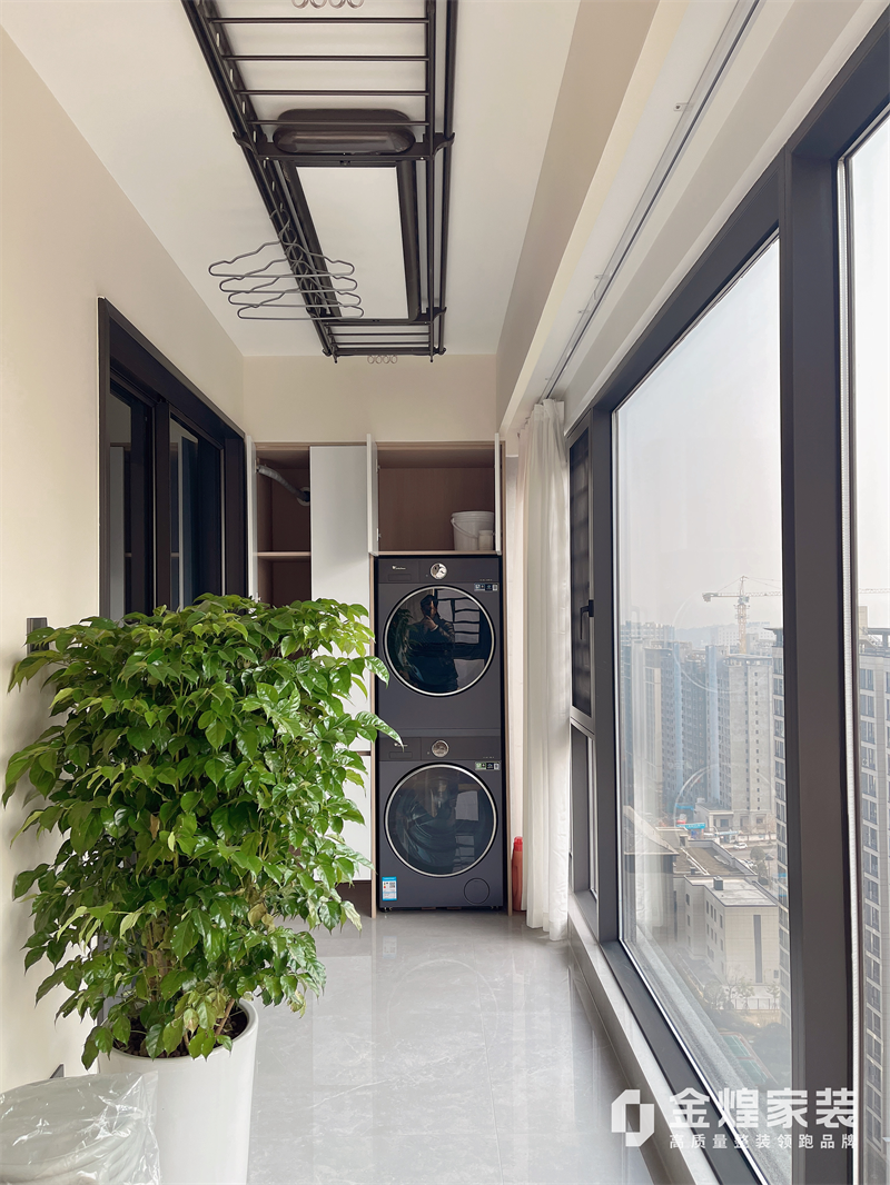 入户门往电梯间推出去了1m,增加了过道面积跟储物空间。整体色调偏暖色,家具选用深色家具让空间更有层次。