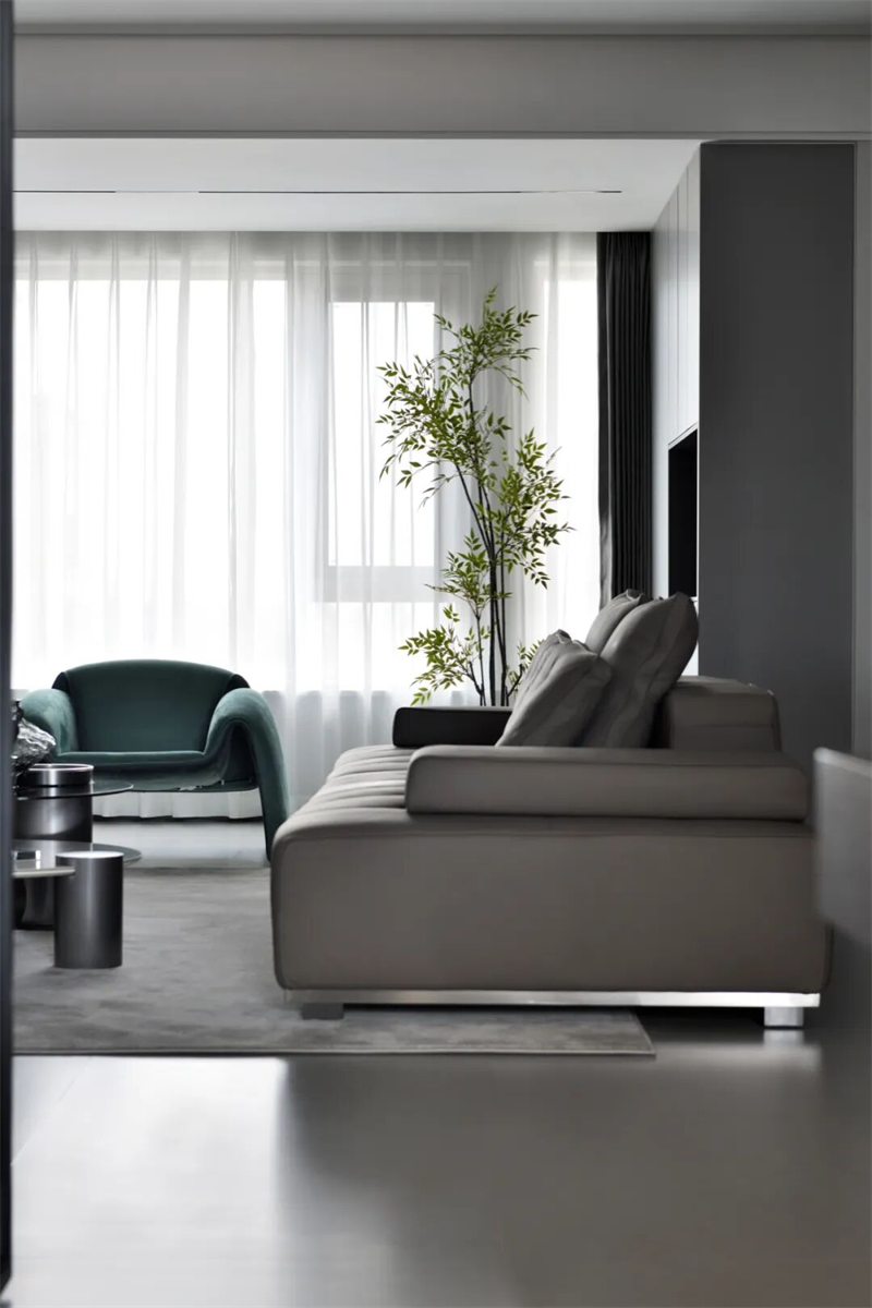 本案以现代极简为设计语言,摒弃冗余装饰,用纯粹的线条、克制的色彩与精炼的材质,构建出一个静谧而有力量的空间。黑白灰为主调,辅以一抹绿意点缀,既体现秩序之美,又不失温度与呼吸感。从空间布局到细节处理,每一处都遵循“少即是多”的原则,让居住回归本质——简洁、从容、自由。