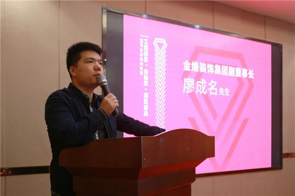 金煌装饰集团董事周晶,首先对每个一线项目经理及工匠师傅的辛勤付出,表示感谢。他强调,我们的匠人需严格遵循“秉承健康住宅新整装”的产品理念及金煌独有的“32大标准精装工艺”,不断超越突破,以为客户提供完美的产品服务为核心,确保精工工艺切实落地,全面发展和完善自身品质,以口碑、质量、信誉为核心,以为客户提供尽善尽美的工程服务为宗旨。