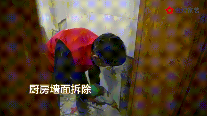拆除旧厨房是工程中的第一项,将旧的墙面和地面上的瓷砖全部拆除,以便于后续安装管道和布置线路。