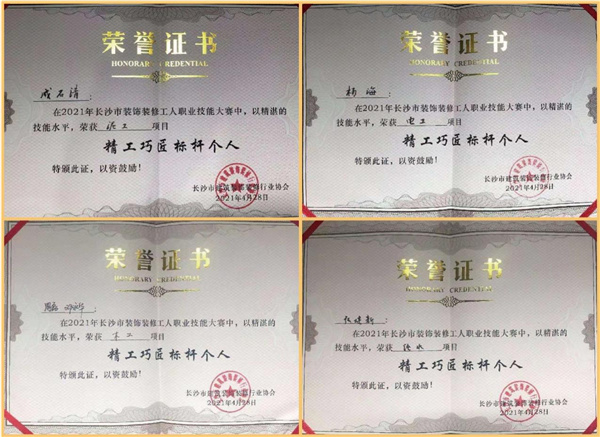 本次“2021长沙市装饰装修工人职业技能大赛”上,金煌家装再度斩获大奖,以品质领跑湖湘,荣获了泥工、电工、木工、给水4项“精工巧匠标杆个人奖”,以及“优秀组织奖”双料大奖。