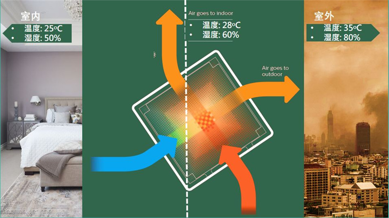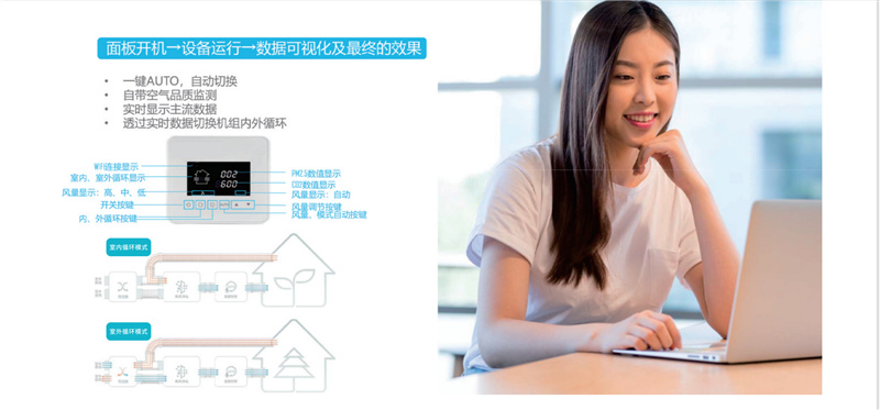 它不仅可以尽可能的增加进入室内的清新空气,还可持续将室内包括PM2.5、过敏原、甲醛、花粉、二氧化碳、总挥发性有机化合物等污浊空气及超细颗粒物排放到室外,始终保持更健康和舒适的家居环境。